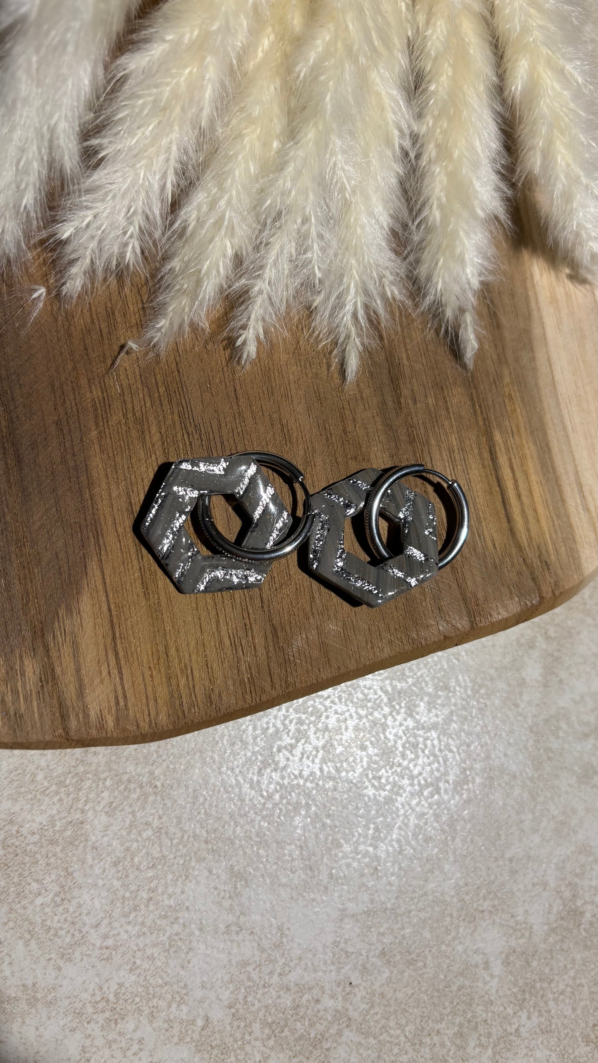 Bijou façonné à la main en pâte polymère, recouvert d’une couche de résine pour le protéger et lui apporter de la brillance.