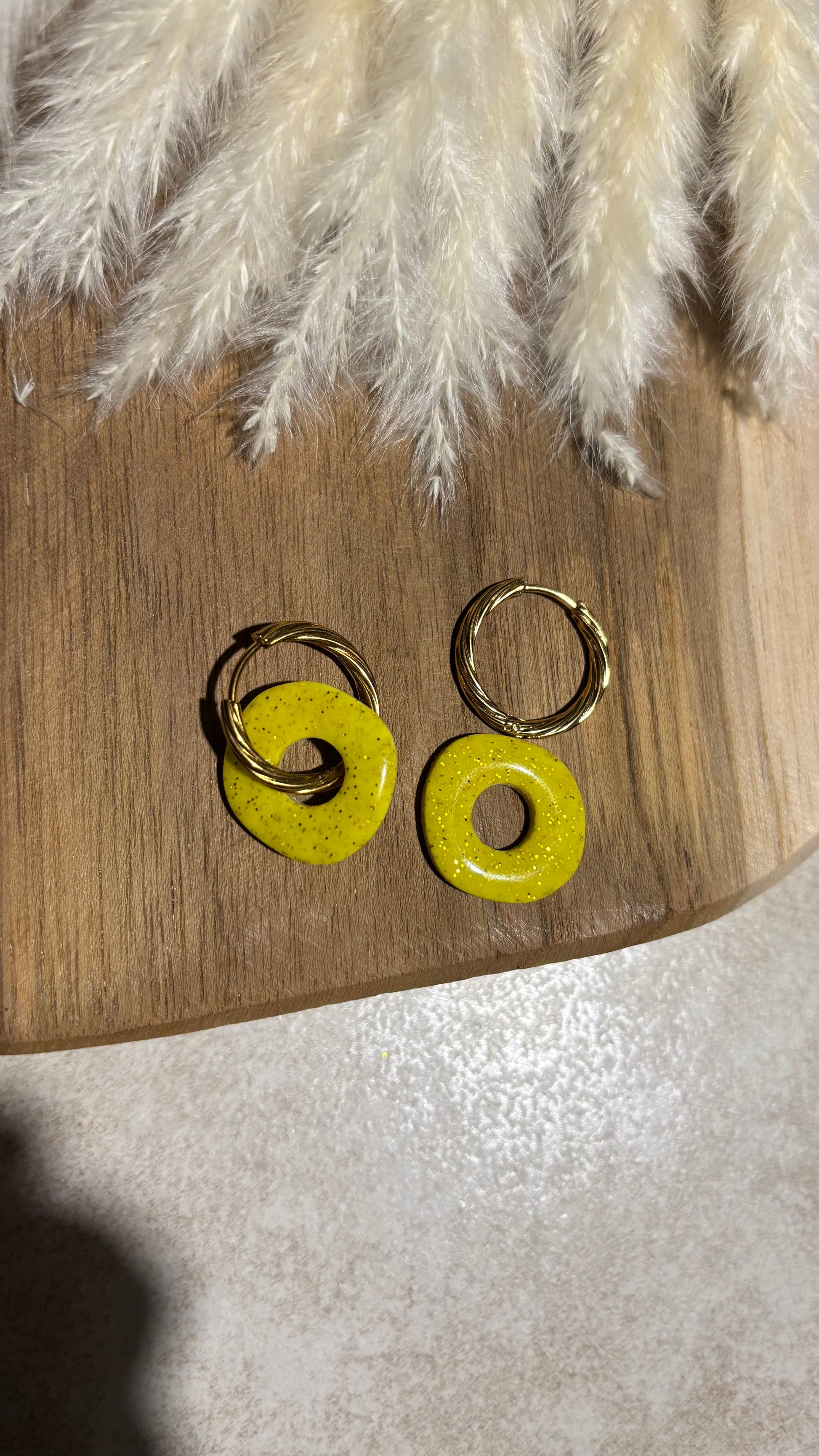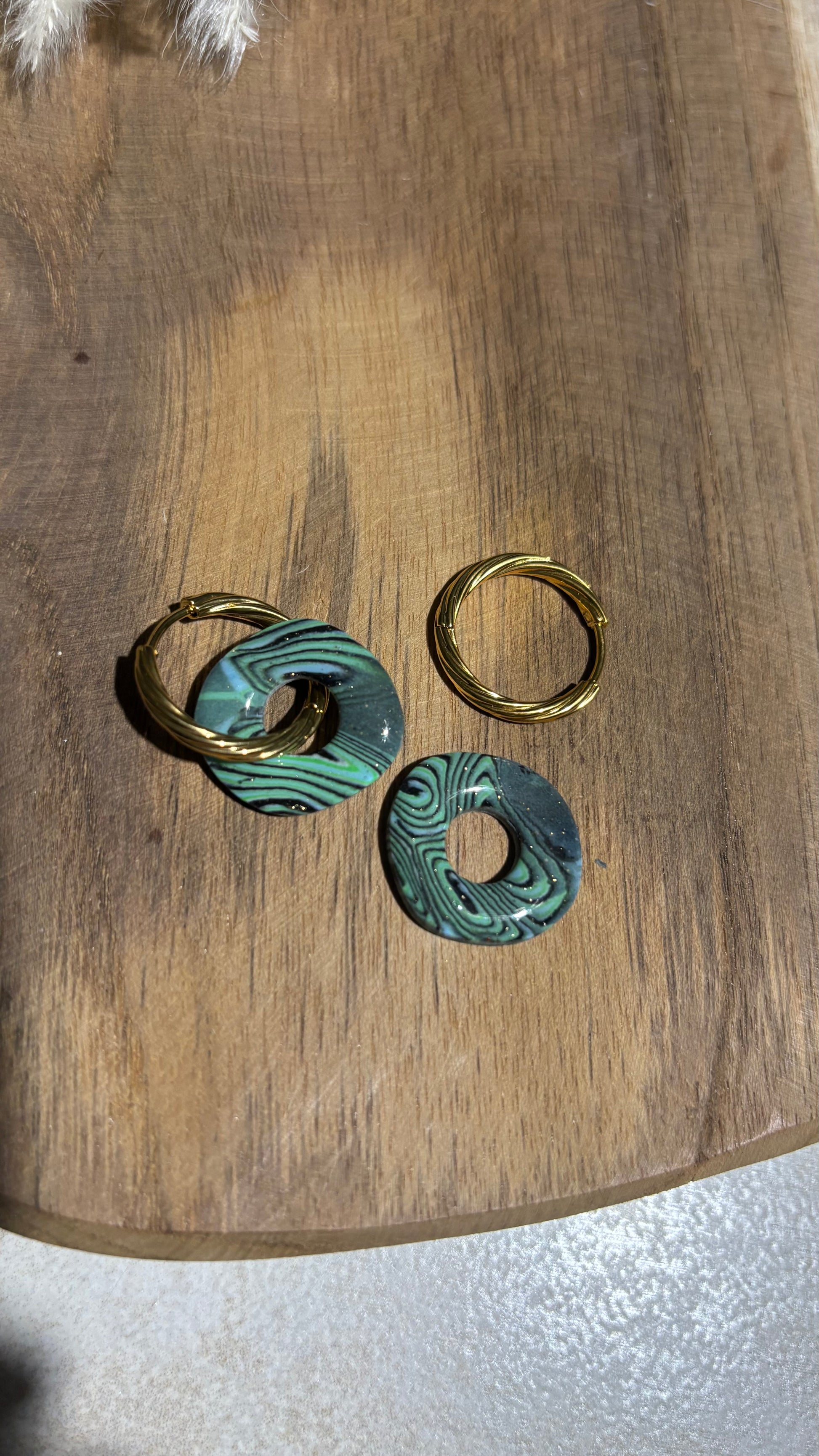 Bijou façonné à la main en pâte polymère recouvert d'une couche de résine pour le protéger et lui apporter de la brillance.