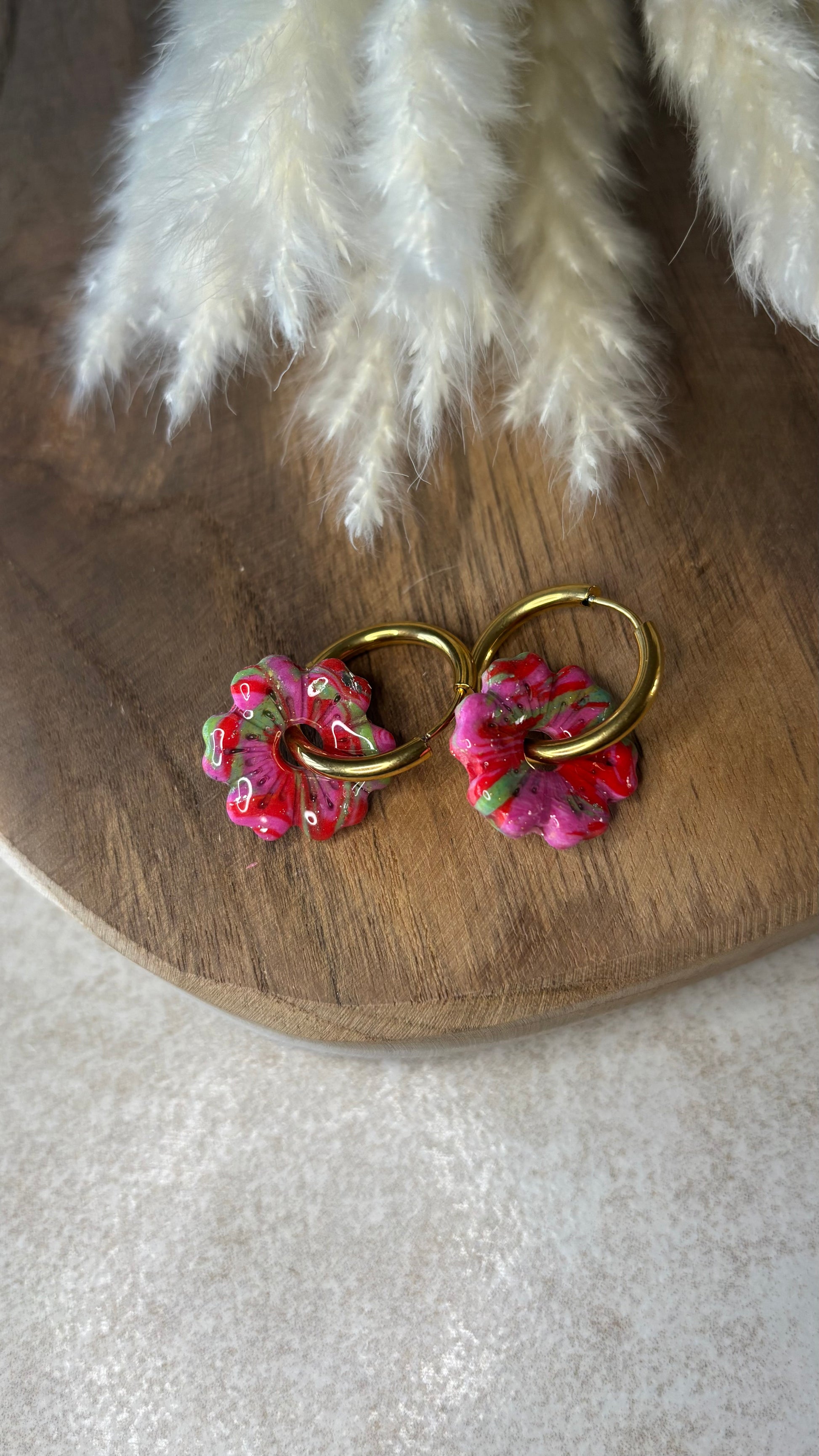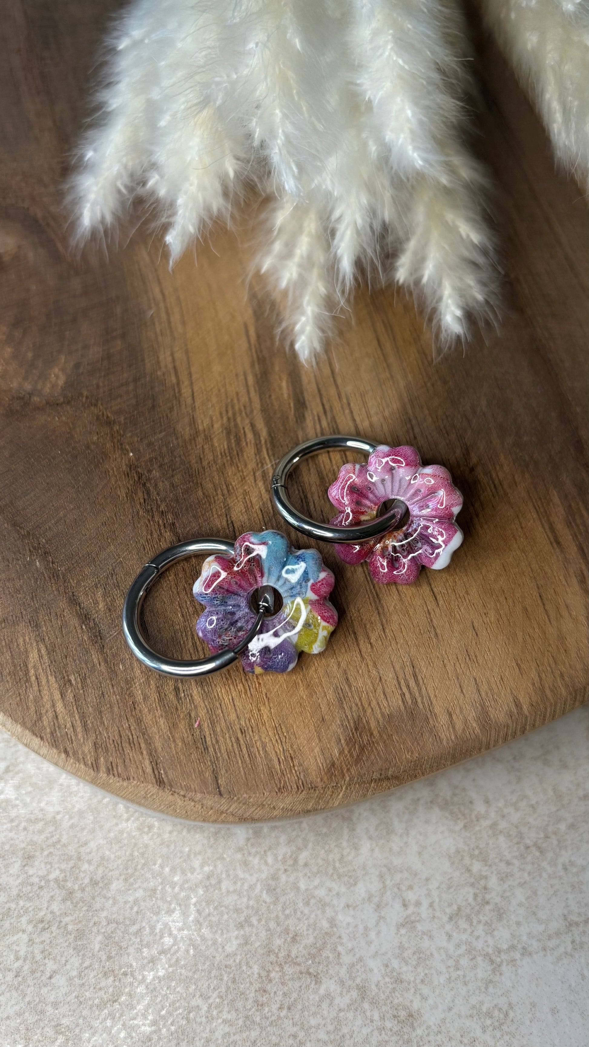 Bijou façonné à la main en pâte polymère recouvert d'une couche de résine pour le protéger et lui apporter de la brillance.