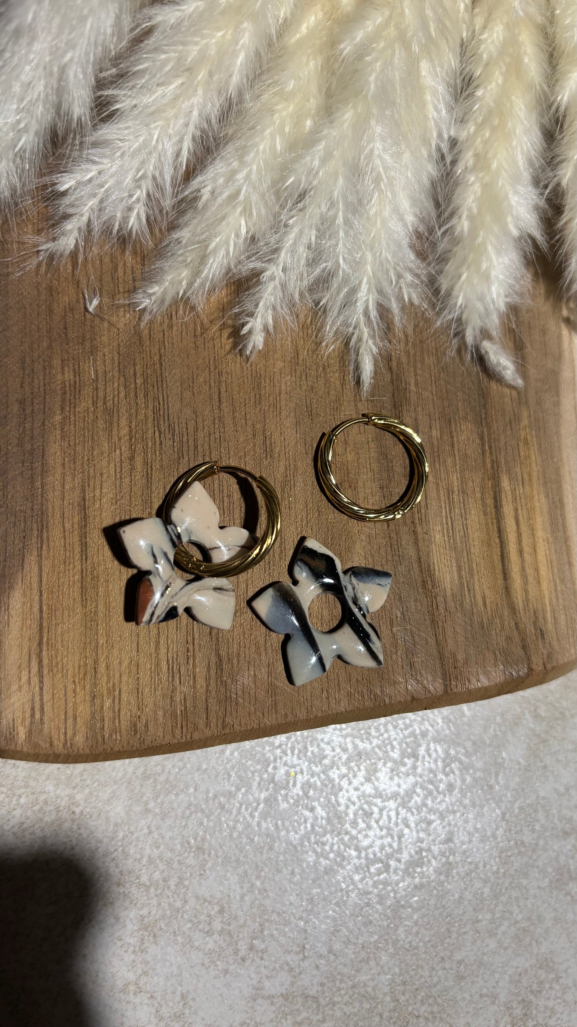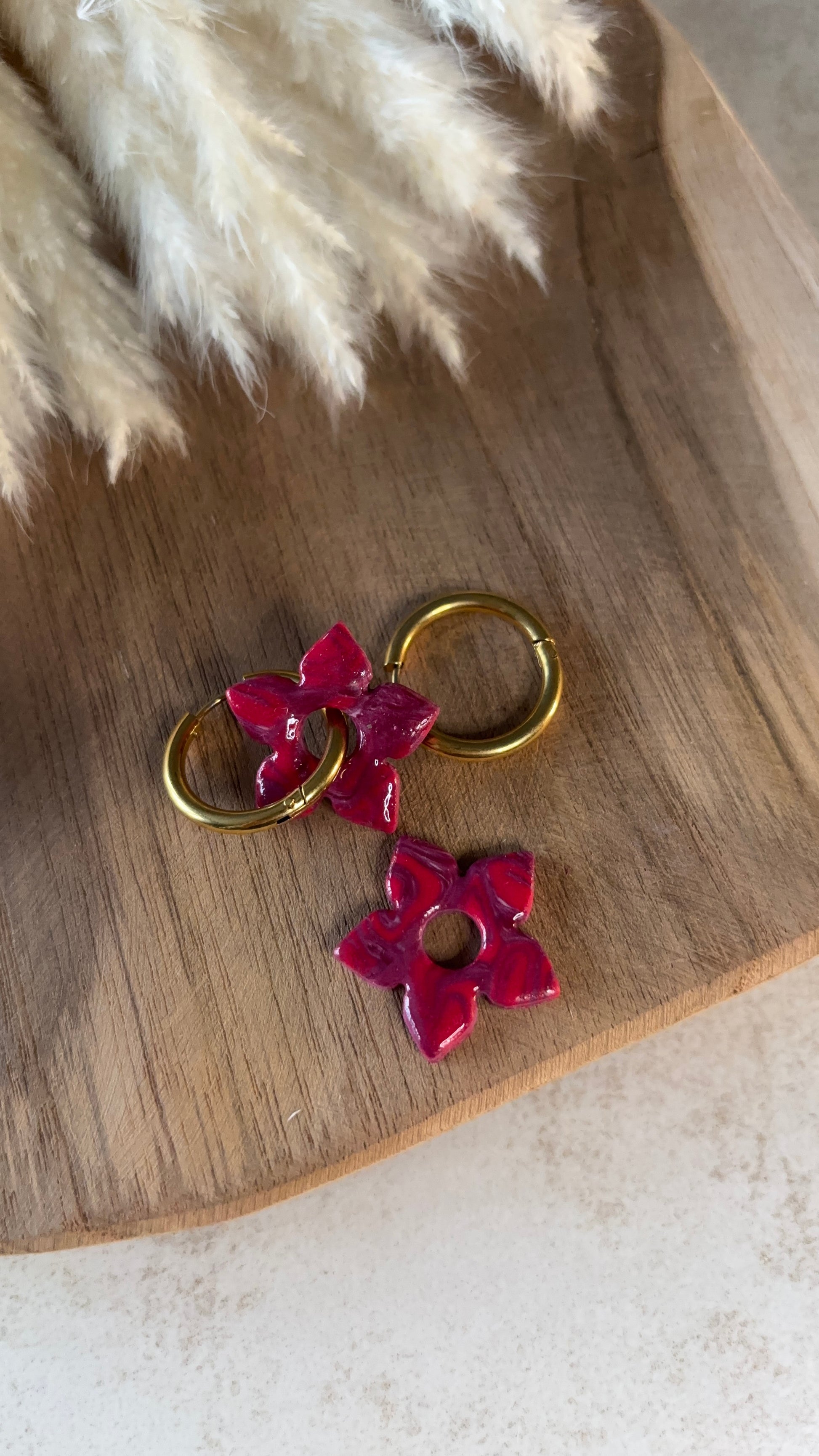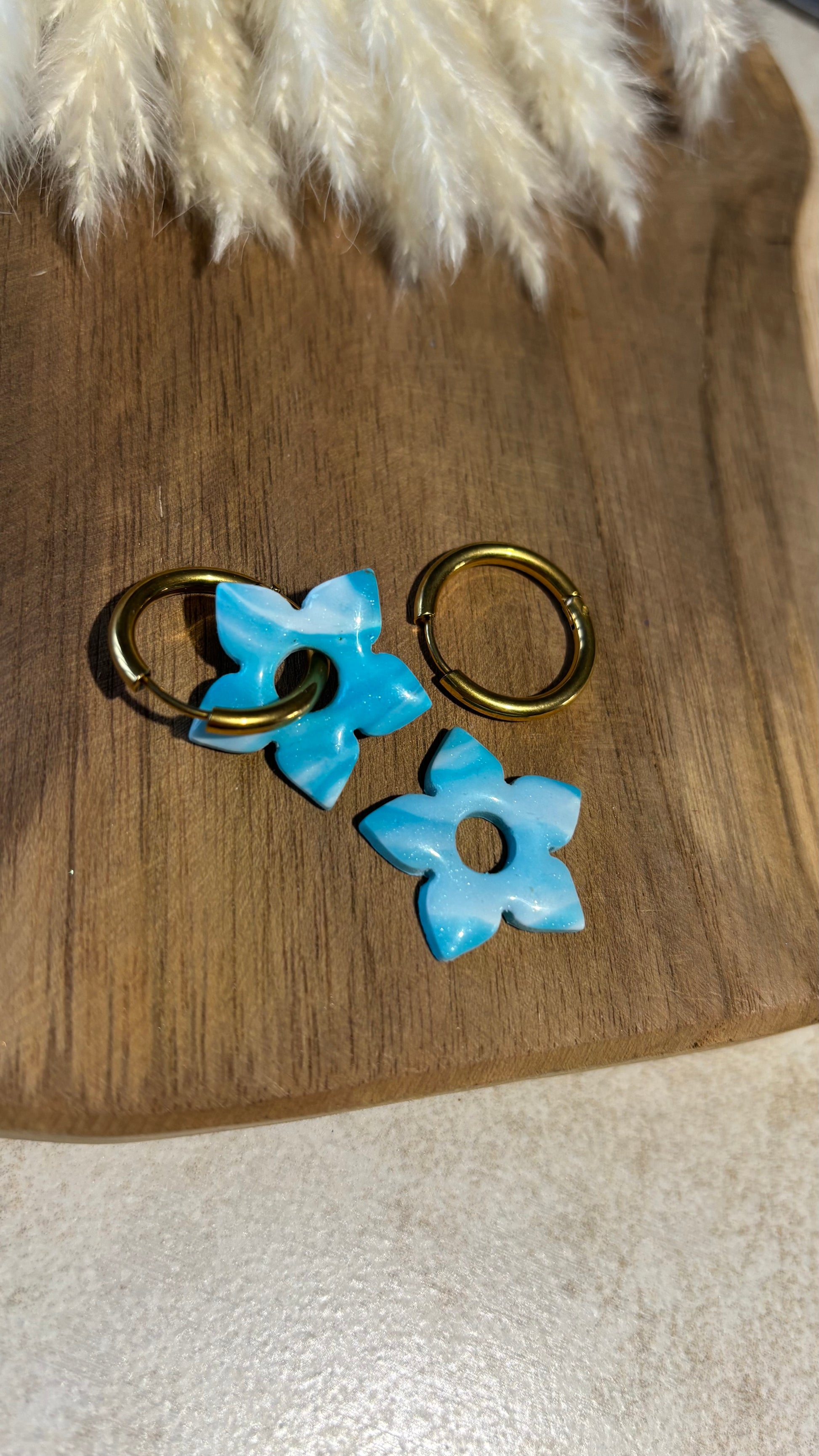 Bijou façonné à la main en pâte polymère recouvert d'une couche de résine pour le protéger et lui apporter de la brillance.