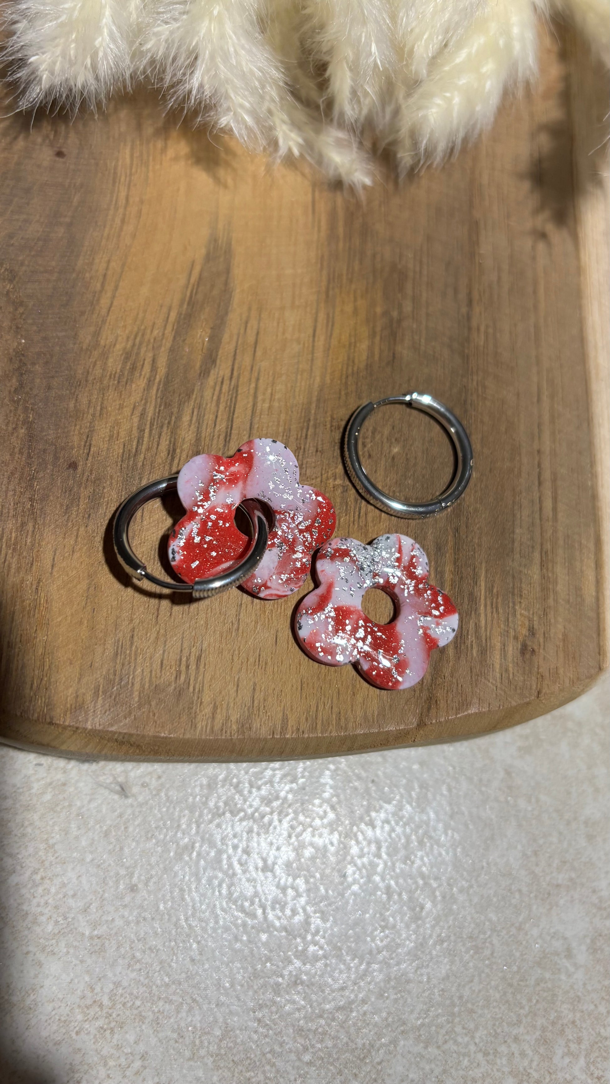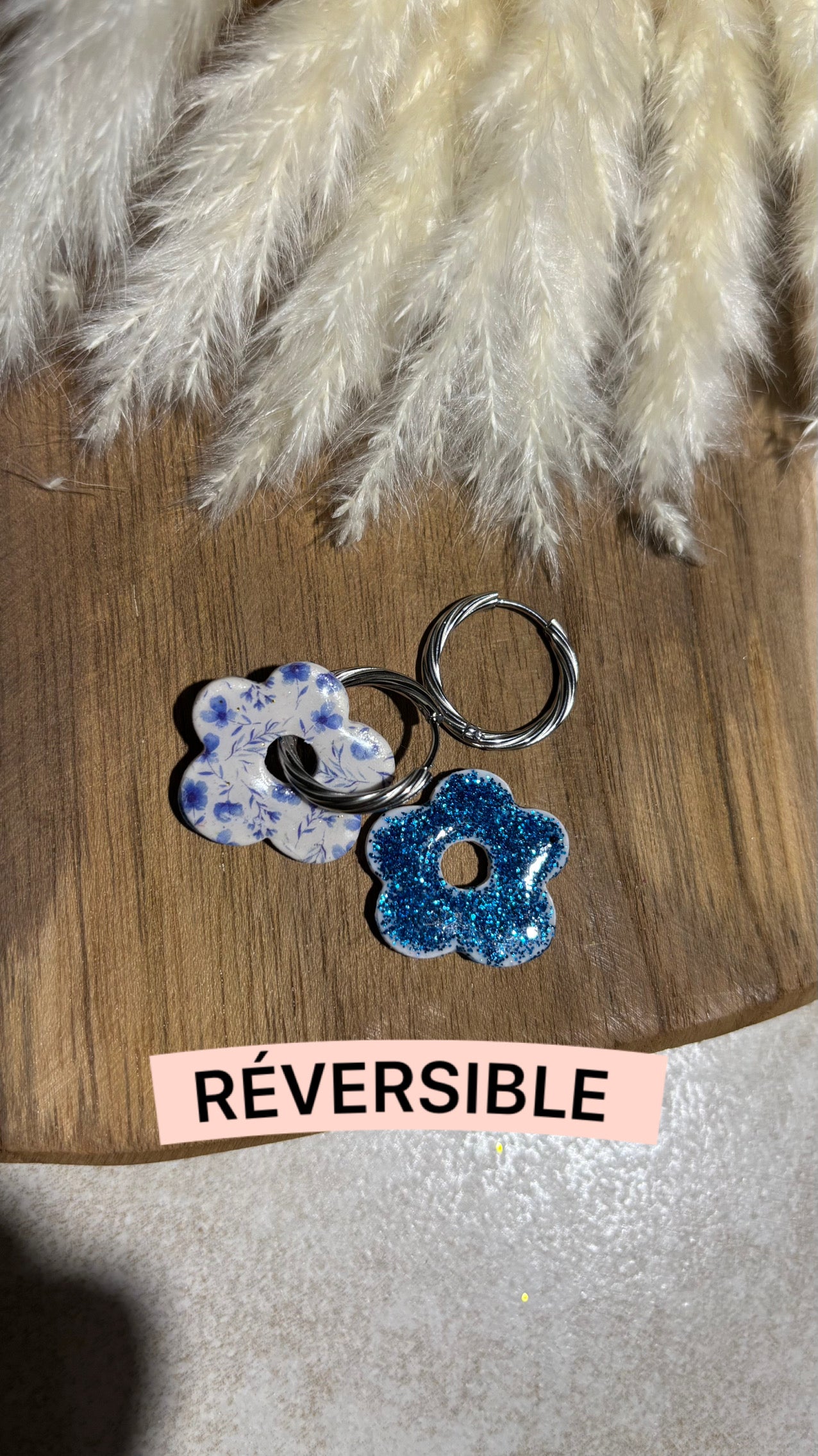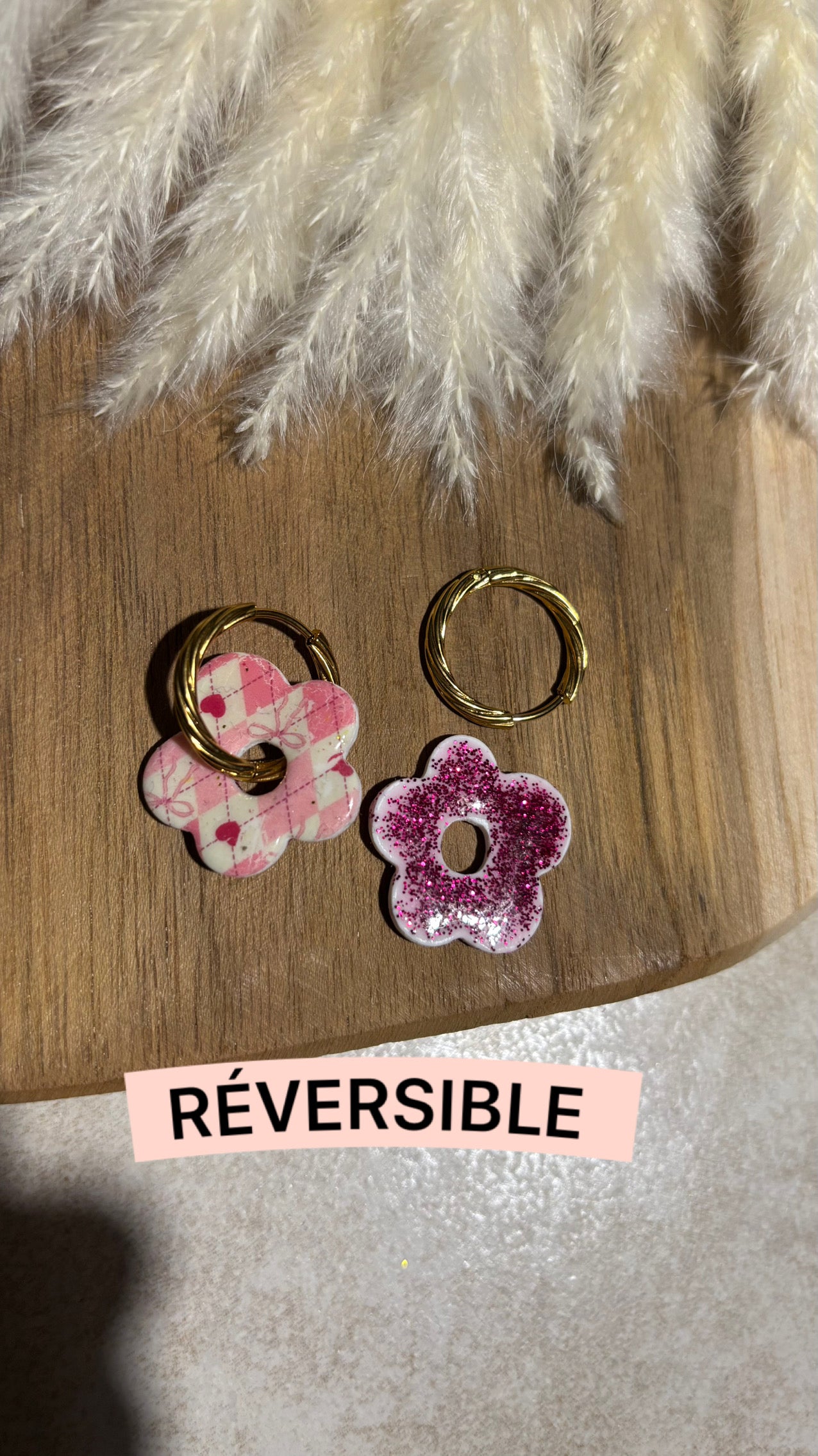 Bijou façonné à la main en pâte polymère, recouvert d’une couche de résine pour le protéger et lui apporter de la brillance.