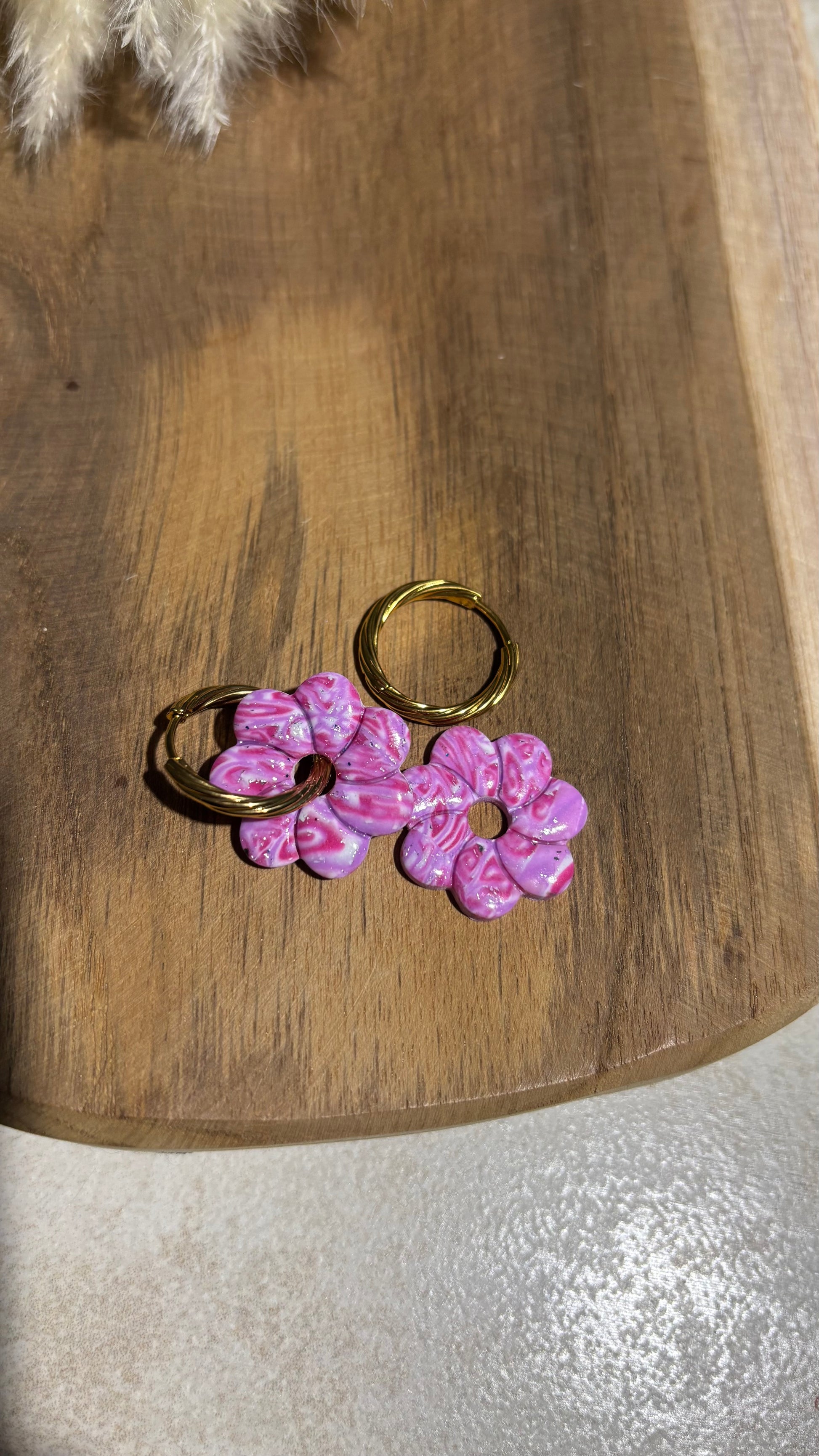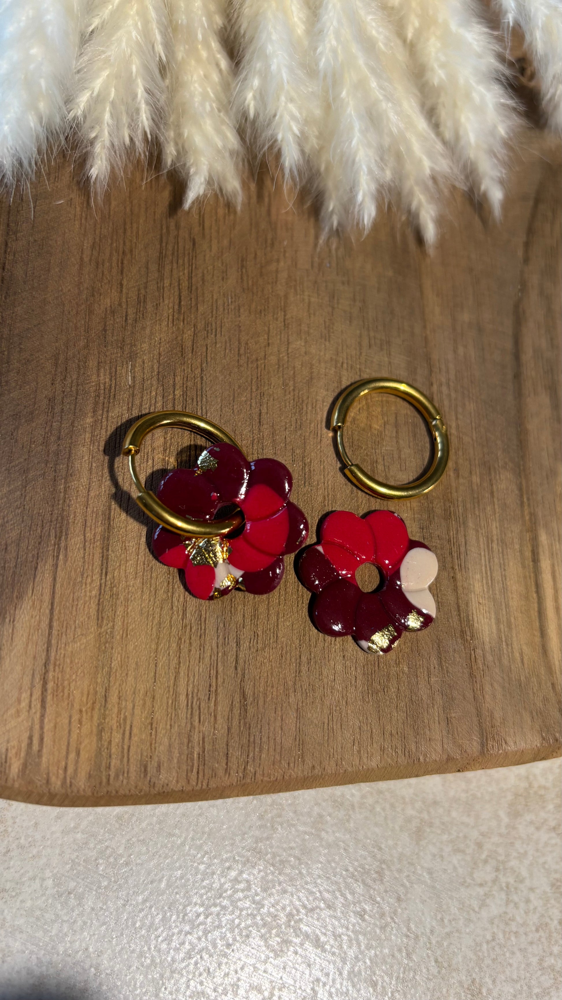 Bijou façonné à la main en pâte polymère, recouvert d’une couche de résine pour le protéger et lui apporter de la brillance.